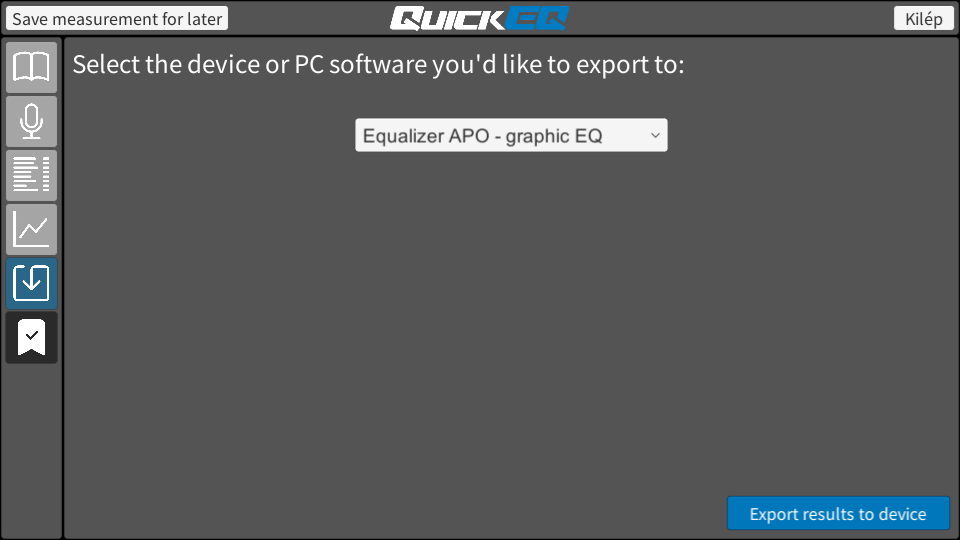 - One-click - Same as Configuration file, but tries to overwrite Equalizer APO's current configuration for an instantaneous export and application.