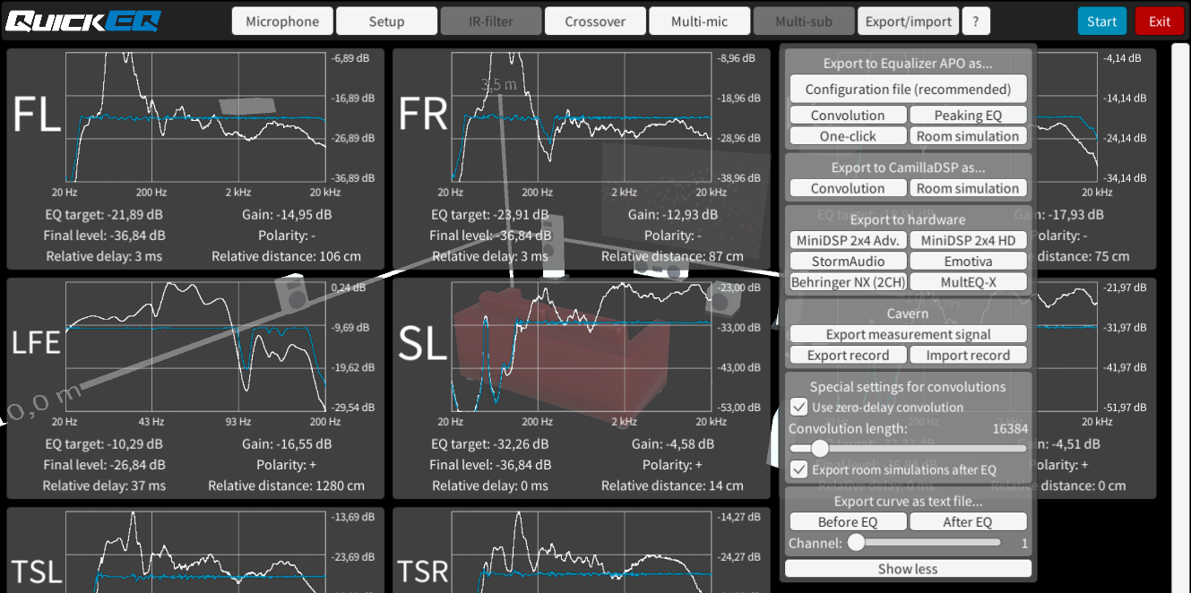 - Room simulation - This is not a correction, but an export of each channel's impulse response. This can be used for simulations and developer experiments, like HRTF creation.
