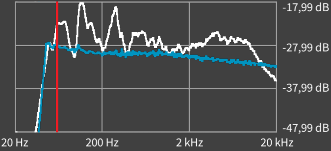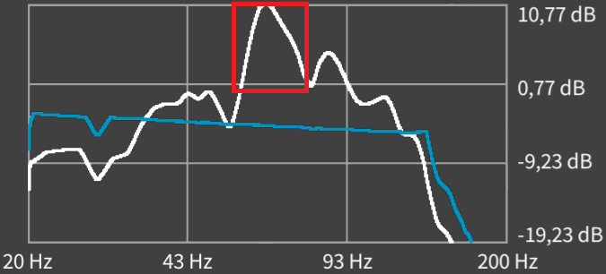 If acoustic issues can cause some frequencies to be severely silenced, they can also cause them to be way louder than they should be. These are present as peaks, for example, the following subwoofer has a loud one: