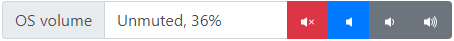 Control the operating system's volume or mute it. The feedback is in text, and there is no slider, as this might be used for equipment protection.